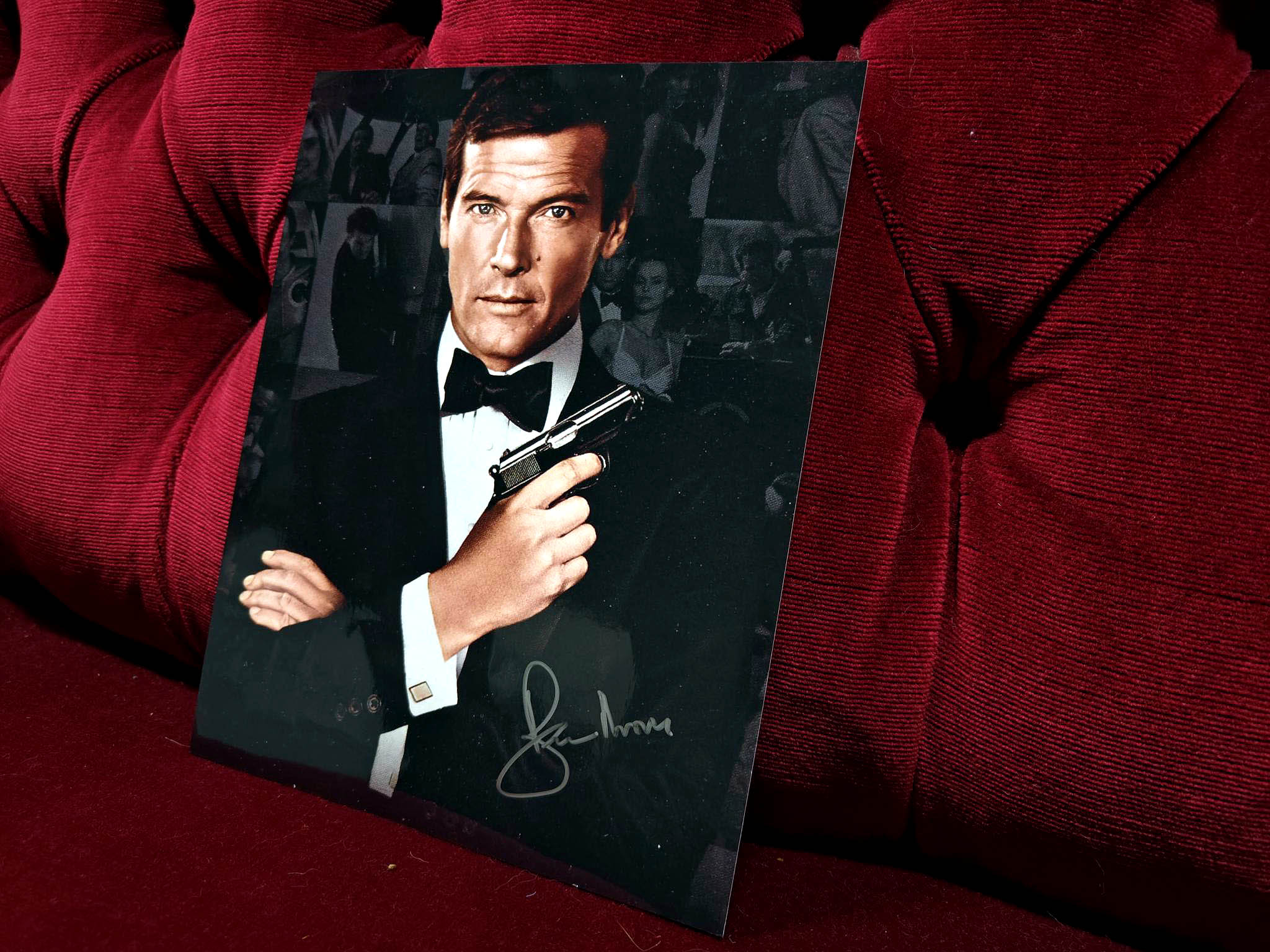 Muuta: Kohteena huikaisevan hieno ja harvinainen Bond -fanin märkä päiväuni. Kyseessä on nimittäin ikonisen 007 James Bond -näyttelijä Sir Roger Mooren alkuperäinen nimikirjoitus aitoustodistuksella. Nimikirjoitus on tehty elokuvan 007 – The Spy Who Loved Me (007 – Rakastettuni) valokuvakorttiin, jossa Bond on klassisessa ”poseerauksessa” aseen kanssa… Kerrassaan mieletön kohde Bond-fanille tai miesluolan keskipisteeksi.