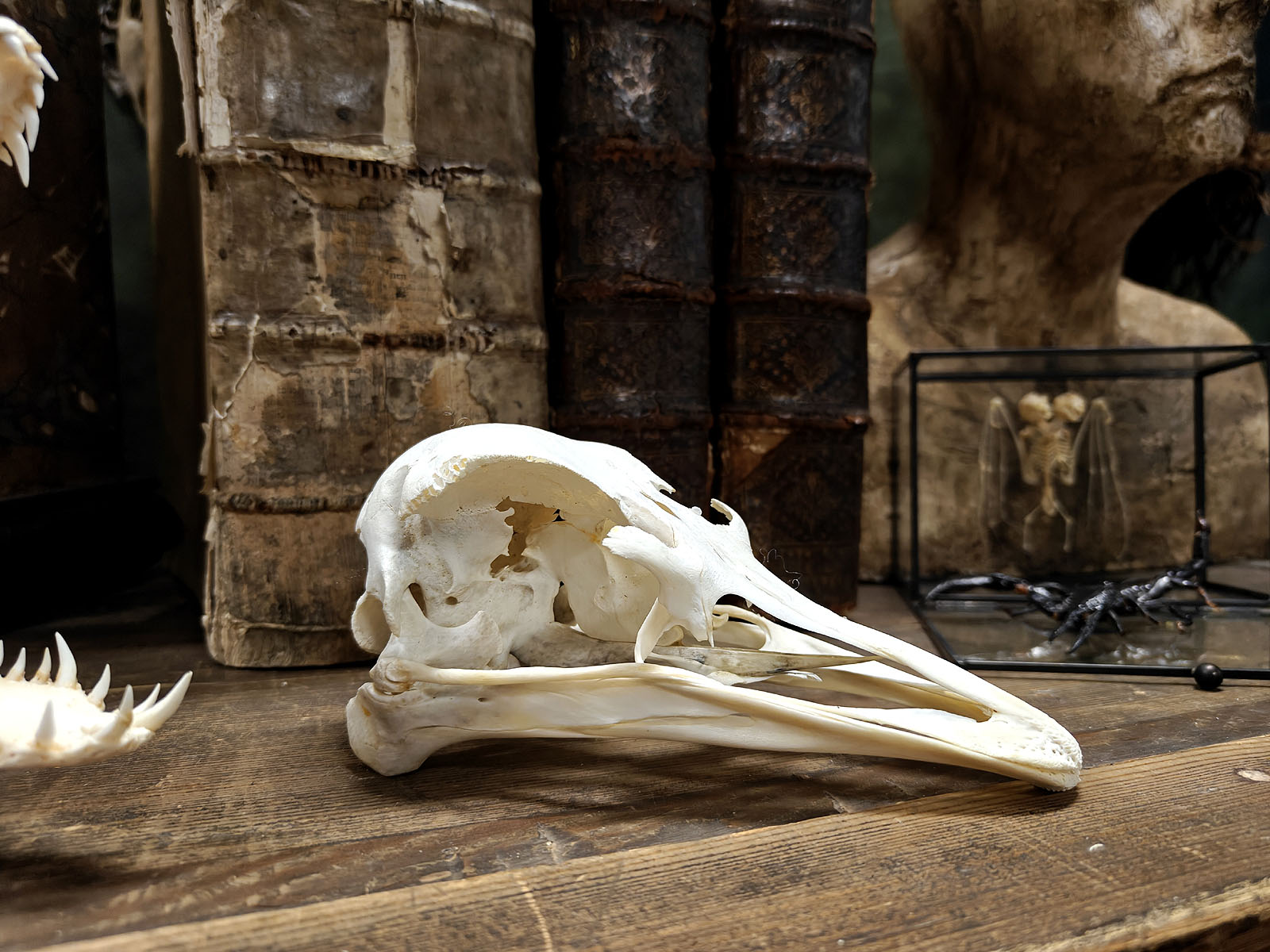 Muuta: Tämä vaikuttava ja selkeälinjainen kallo kuuluu maailman suurimmalle nykyiselle linnulle (Struthio camelus), joka tunnetaan sekä nopeudestaan ja sopeutumisestaan karuihin savanniympäristöihin. Strutsin kallon rakenne paljastaa lajin erikoistumisen, joka on tärkeää tälle lentokyvyttömälle linnulle. Erikoispiirteitä ovat mm. pitkä suora nokka, laajat silmäkuopat ja kevytrakenteinen kestävä luusto, joka tukee suurta päätä.