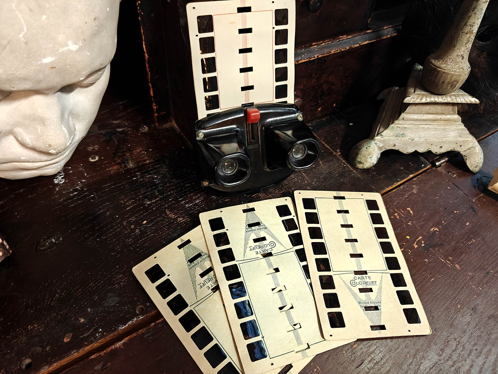 Colorelief stereoskooppi oli aikanaan matkailijoiden, opettajien ja uteliaiden keräilijöiden suosikki. Laite oli kompakti, helppokäyttöinen ja ennen kaikkea hämmästyttävä. Tänään se on pala visuaalisen kulttuurin historiaa, muistutus ajasta, jolloin kolmiulotteinen maailma mahtui pieneen bakeliittiseen laatikkoon ja valo teki loput. Aivan mahtava kohde ja ennen kaikkea myös noiden tunnelmallisten ”filmien” ansiosta.