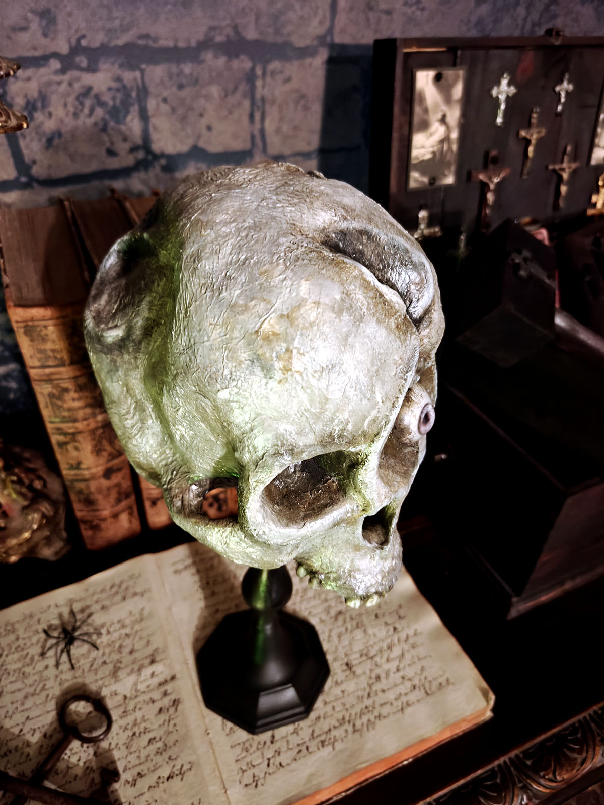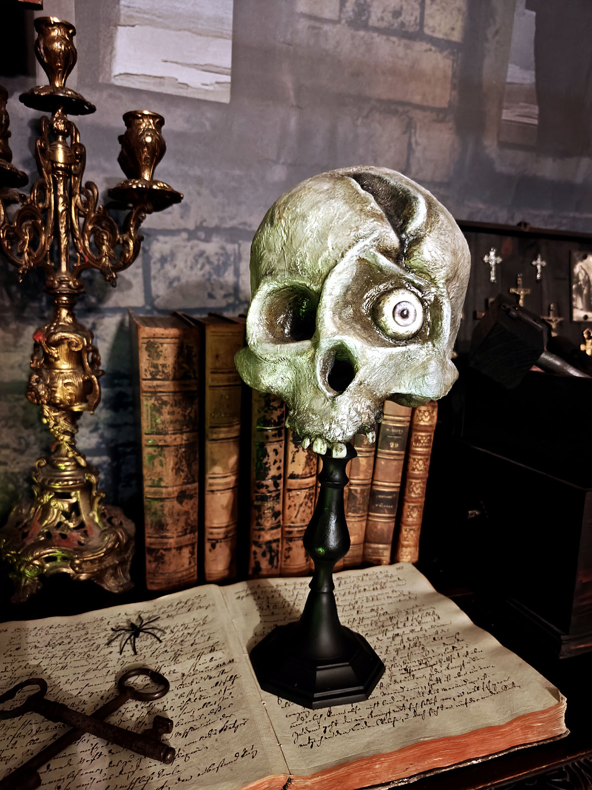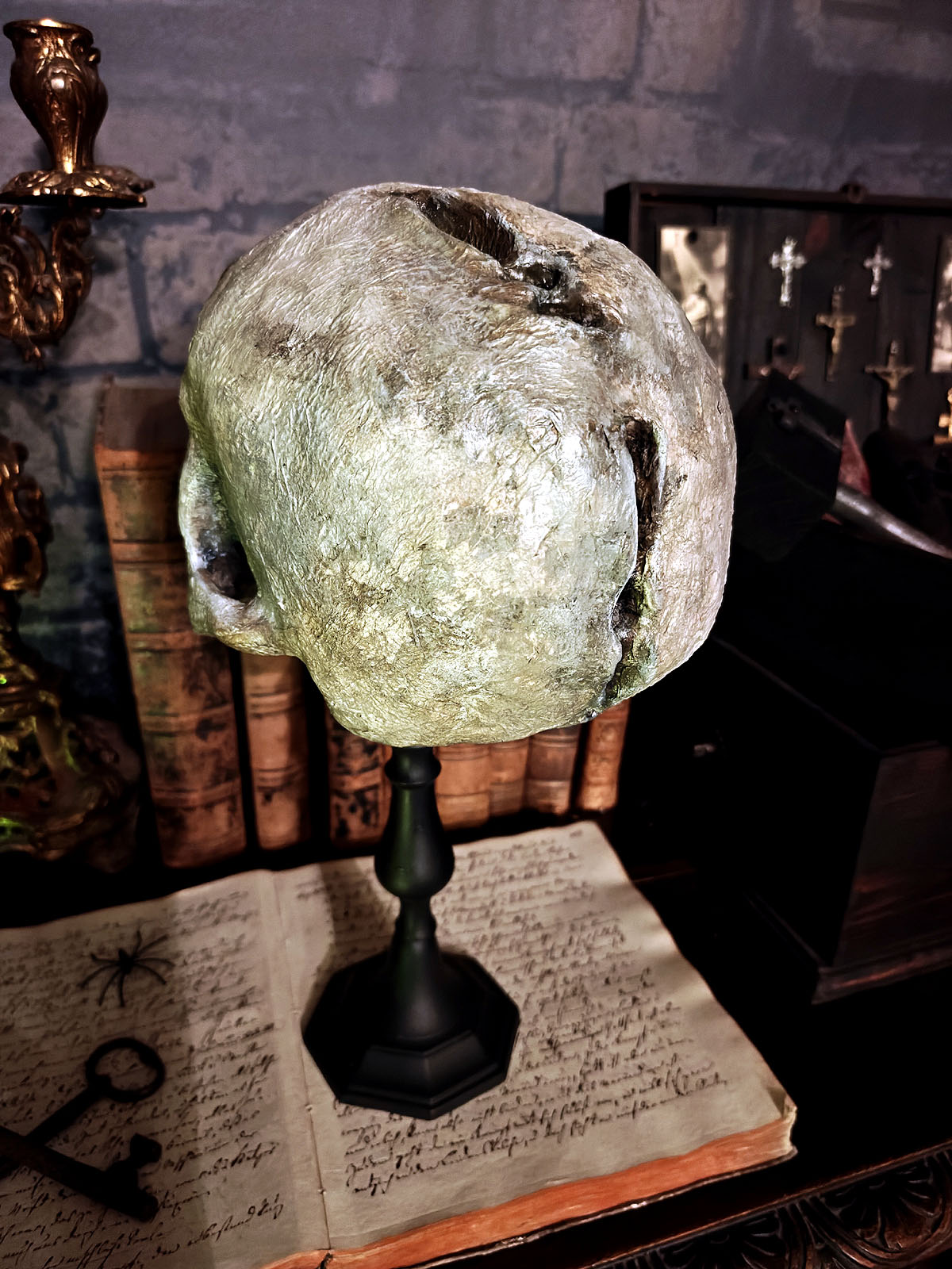 Muuta: Tämä uniikki kallomalli on valmistettu taidokkaasti käsityönä ja se kuuluu uniikkina kappaleena Oldin Crania Mortis- kallosarjaan valmistenumerolla 2.