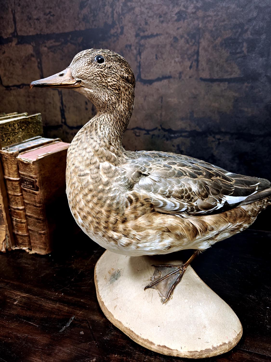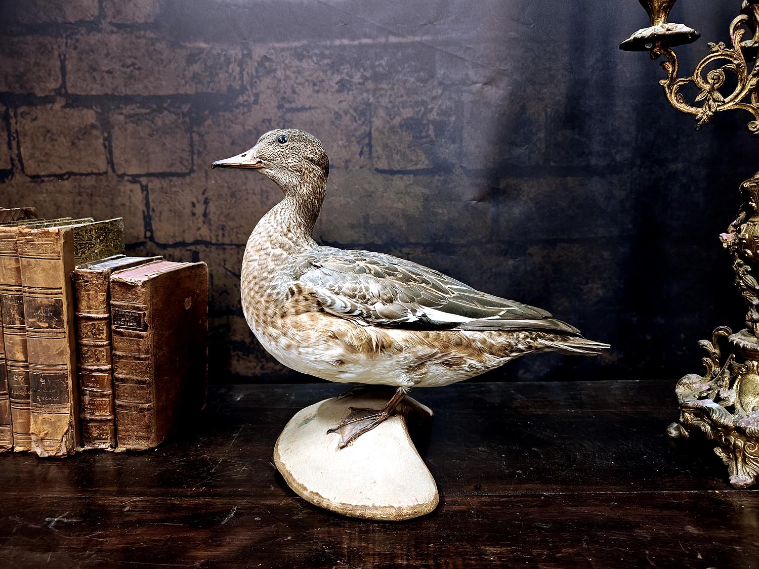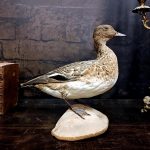 Muuta: Tässä on taas laadukkaasti täytetty haapananaaras, joka saapui meille edesmenneen biologian opettajan omasta kokoelmasta. Lintu edustaa 1900 luvun luonnonhistoriallista taksidermiaa ja sen pyrkimystä tallentaa myös kulttuurisesti merkittäviä vesilintuja tieteellisiksi ja museaalisiksi näytteiksi. Haapananaaras on hillityn kaunis, sen pehmeä höyhenpuku sulautuu pohjoisen rantamaisemaan ja ilmentää vesilintujen rauhallista eleganssia. Haapana on tunnettu sointuvasta vihellyksestään ja yhteisöllisestä luonteestaan, joka symboloi kosteikkojen harmoniaa ja luonnon rytmiä. Upea kohde esimerkiksi luonnonhistorian keräilijälle, taksidermian harrastajalle tai luonnon estetiikkaa arvostavalle.
