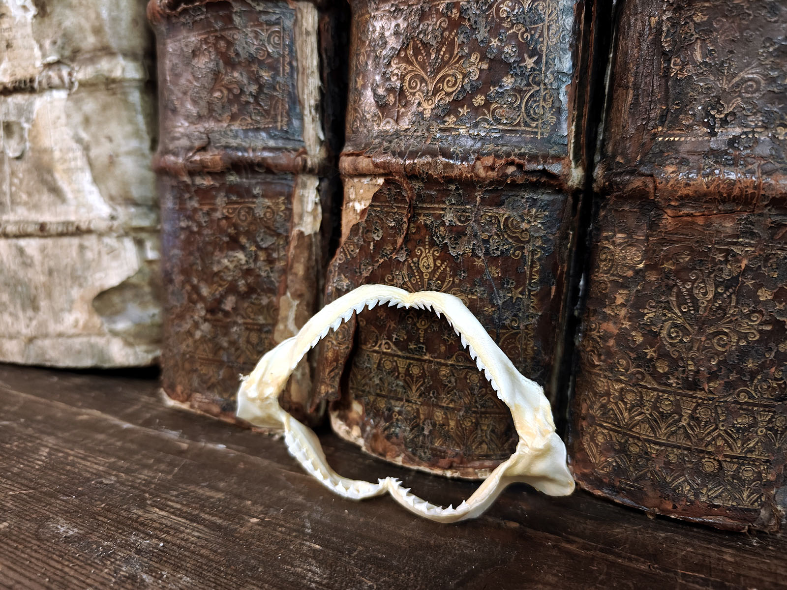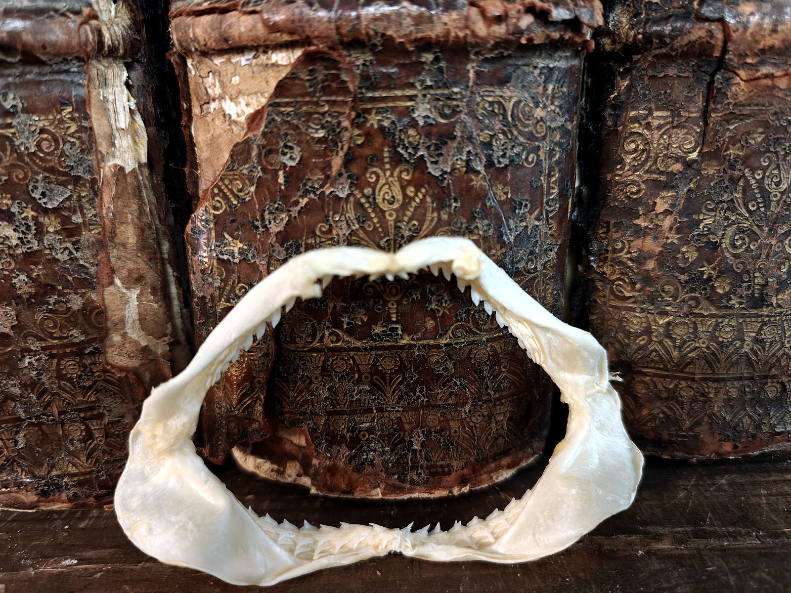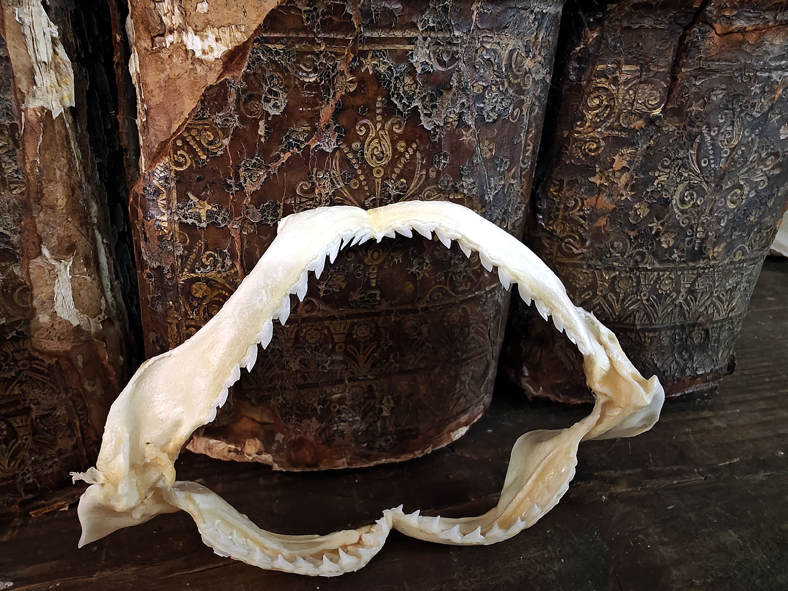 Leukojen leveys (9 cm) kertoo yksiselitteisesti että kyseessä on poikanen, sillä vastasyntyneet spinnerhait ovat 60–75 cm pitkiä ja niiden leuat ovat vielä kevyitä, rustoisia ja kalkkeutumattomia. Tämä tekee niistä huomattavasti hauraampia kuin aikuisten yksilöiden massiiviset leukarakenteet. Tässä yksilössä rusto on kuivunut tasaisesti, ja hampaiden asento on säilynyt kauniisti.