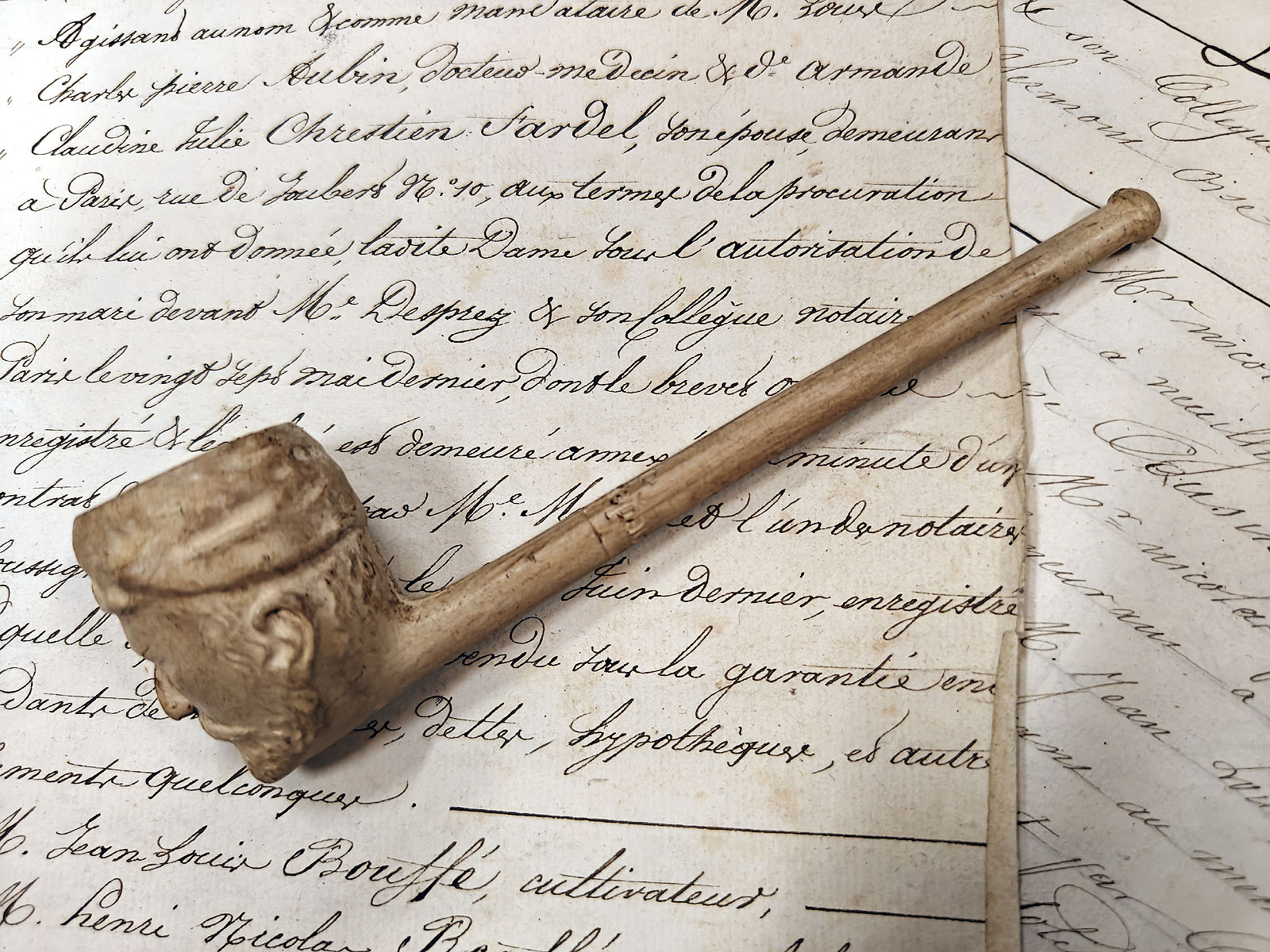 Uusi kuvakulma korostaa piipun ja sen pitkän, ohuen varren saumatonta liitosta, mikä osoittaa valmistajan teknistä taituruutta valumuottien käytössä. Old Illusionsin kokoelmassa tämä piippu tuo esiin historiallisen realismin ja rustiikkisen kauneuden. Se ei ole pelkkä koriste, vaan se kantaa mukanaan muistoa ajasta, jolloin piippu oli osa jokapäiväistä työntekoa, ansaittua lepohetkeä ja elämän tärkeitä sopimushetkiä. Aito ja rehellinen esine, joka huokuu menneen maailman tunnelmaa.