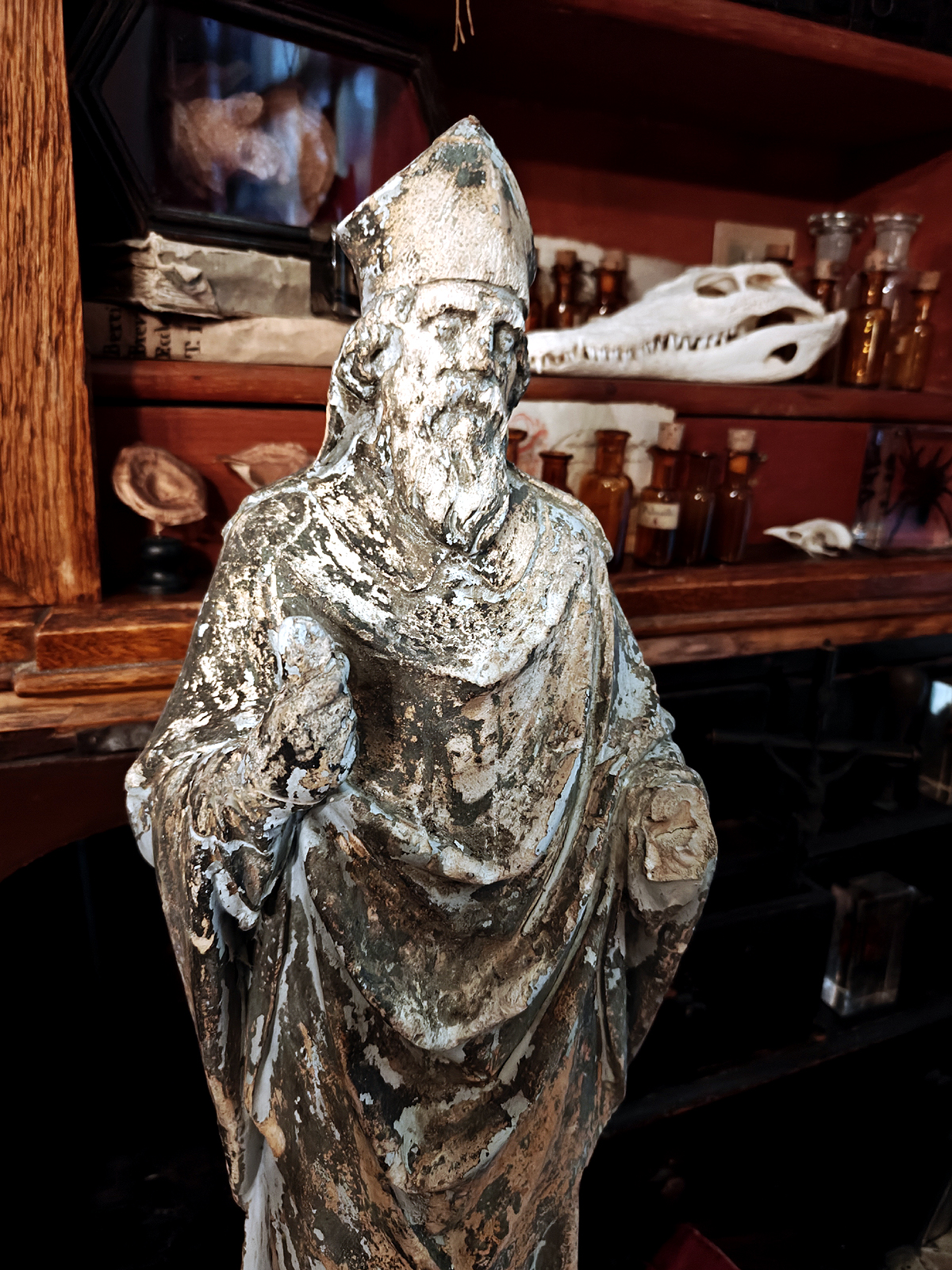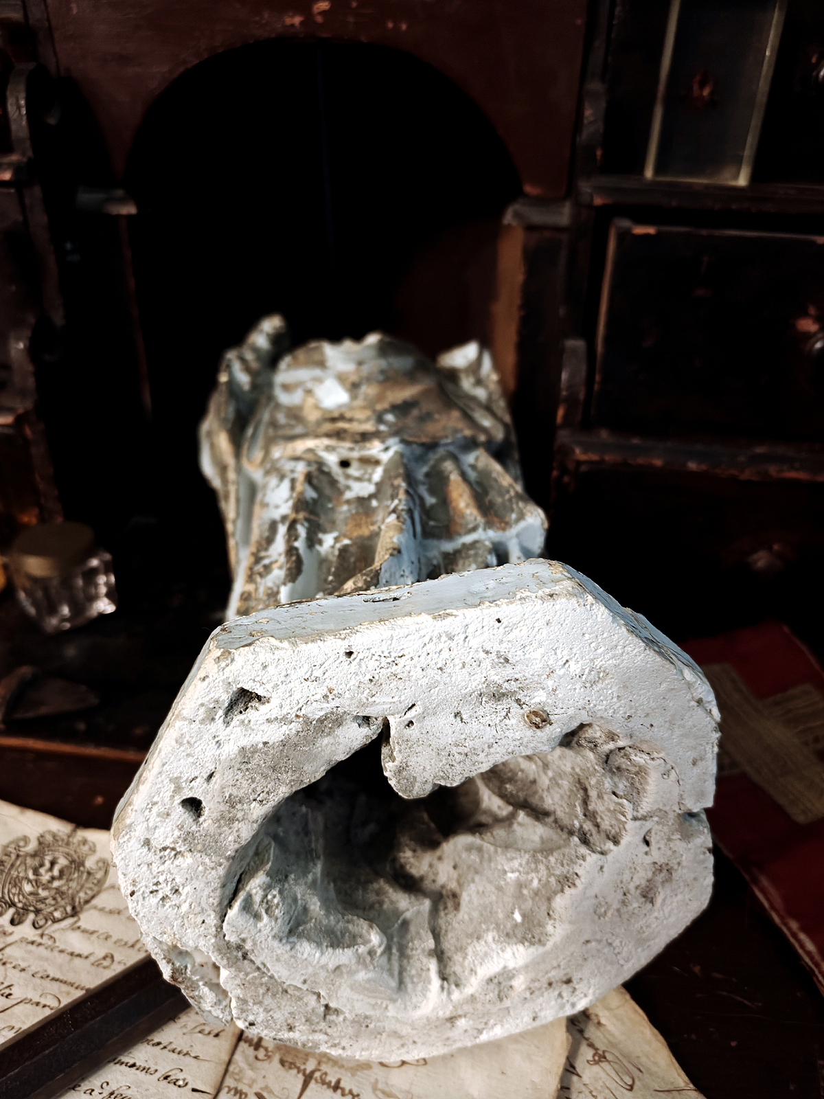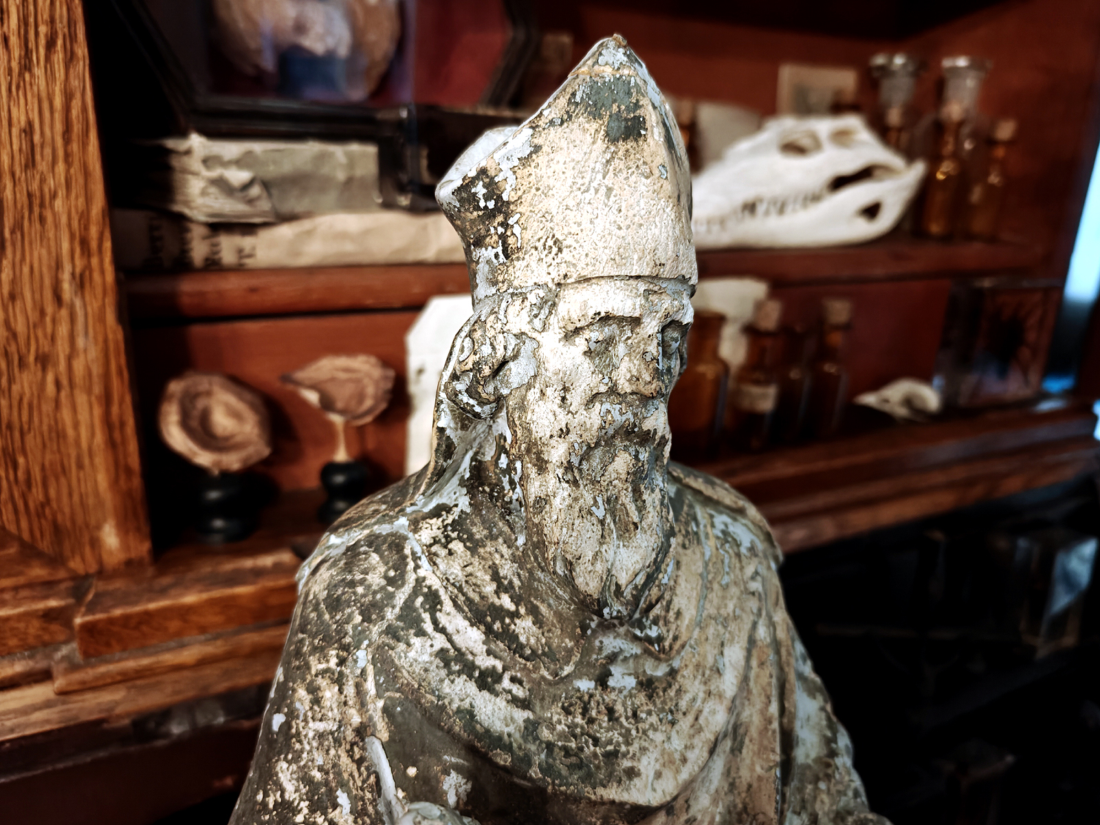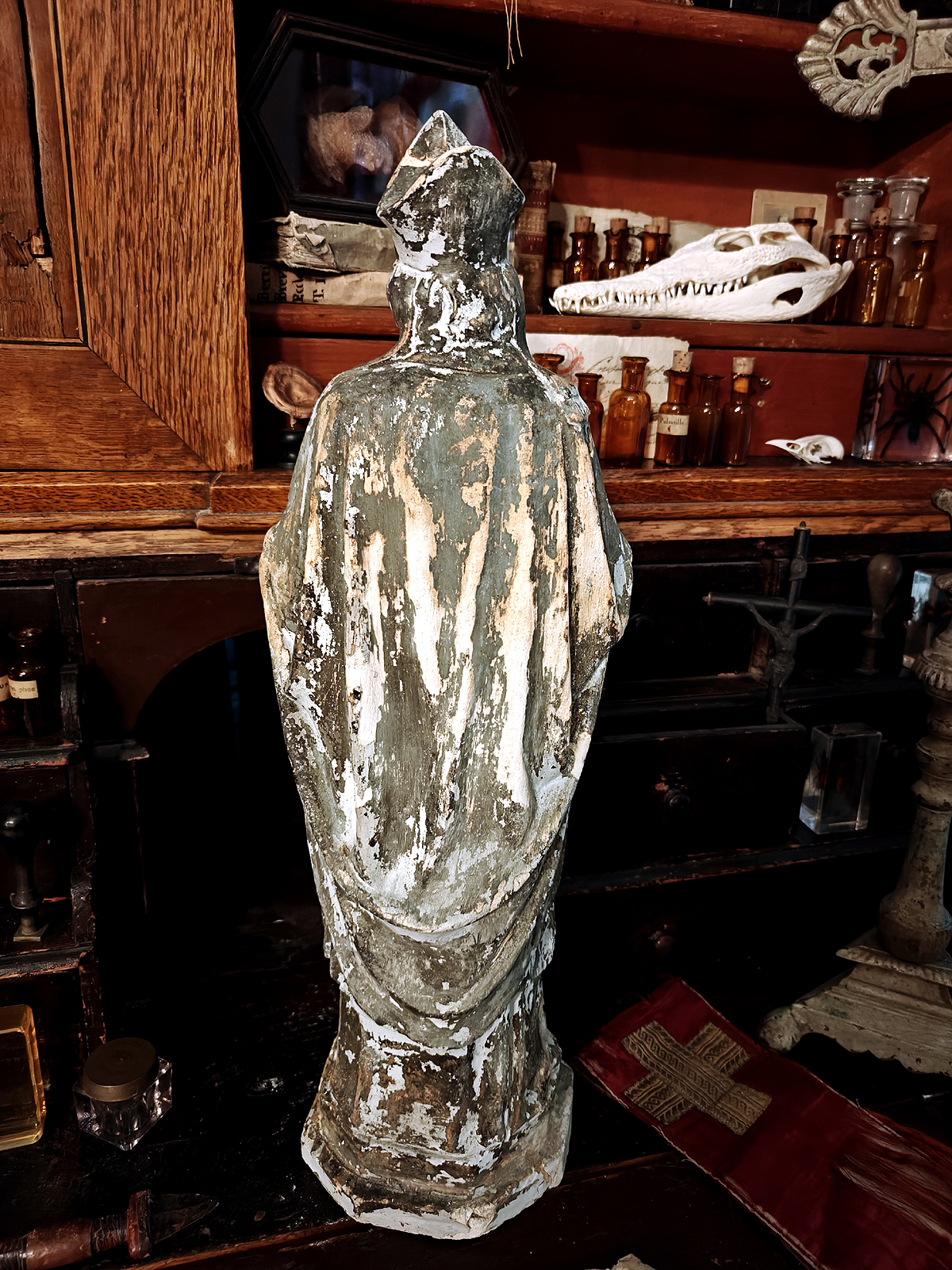 Veistoksen kulunut pinta kertoo sen pitkästä iästä ja vuosisatojen altistumisesta kirkkotilan kostealle ilmastolle. Se on esine, joka on seissyt alttarin läheisyydessä, nähnyt liturgian rytmin ja kantanut hiljaisesti mukanaan seurakunnan rukouksia. Varhaisen 1800- luvun alkuperä tekee siitä huomattavasti harvinaisemman kuin myöhemmät kipsivalut ja sen historia Liègen kirkollisessa ympäristössä antaa patsaalle erityisen kulttuurisen painoarvon. Tämä veistos ei tosiaankaan ole vain uskonnollinen artefakti, vaan se on kirkollishistorian konkreettinen jäänne, joka tuo mukanaan vuosisatojen hiljaisen läsnäolon. Erittäin vaikuttava esine kyseessä!