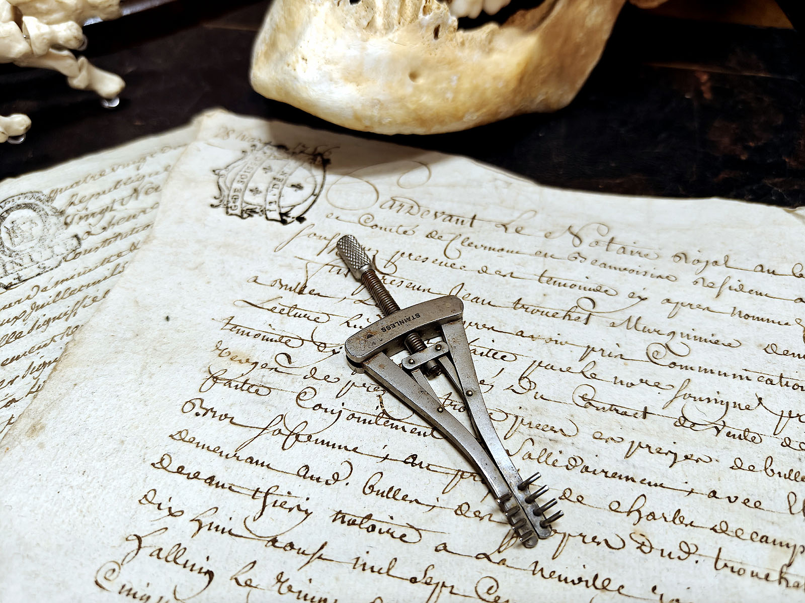 Muuta: Tämä kirurginen haavanlevitin on valmistettu John Weiss & Sonin toimesta, joka oli yksi 1800–1900‑lukujen arvostetuimmista kirurgisten instrumenttien valmistajista. Yritys tunnettiin tinkimättömästä laadustaan, teknisestä innovatiivisuudestaan ja kuninkaallisesta luvastaan toimittaa instrumentteja Britannian hoville. Haavanlevittimen ruuvimekanismi mahdollisti kudosten hallitun ja vakaan avauksen leikkauksen aikana, joka oli ratkaiseva ominaisuus aikakaudella, jolloin kirurgiset toimenpiteet olivat usein nopeita, kivuliaita ja teknisesti vaativia.