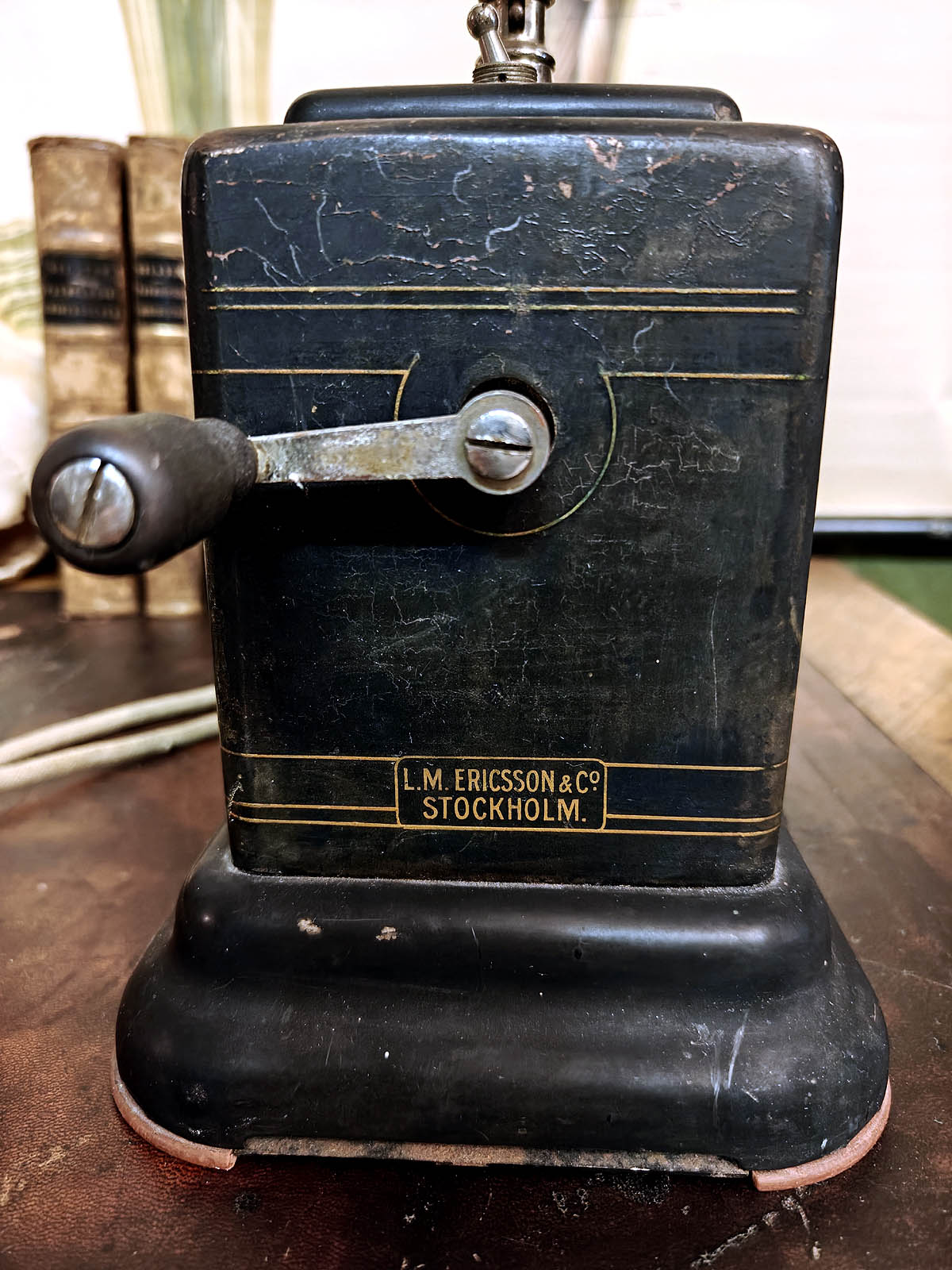 Ericsson oli jo 1900 luvun alussa yksi maailman johtavista puhelinvalmistajista ja tämän mallin magnetogeneraattori (siis erillinen kampilaite) on osa samaa teknistä kokonaisuutta. Sen tehtävänä oli tuottaa sähköinen kutsusignaali, joka soi vastaanottajan puhelimessa tai puhelinkeskuksessa. Yhdessä nämä ”kaksi laitetta” muodostavat täydellisen esimerkin aikakauden viestintäteknologiasta, joka olisi tässä nyt hienosti saatavilla.