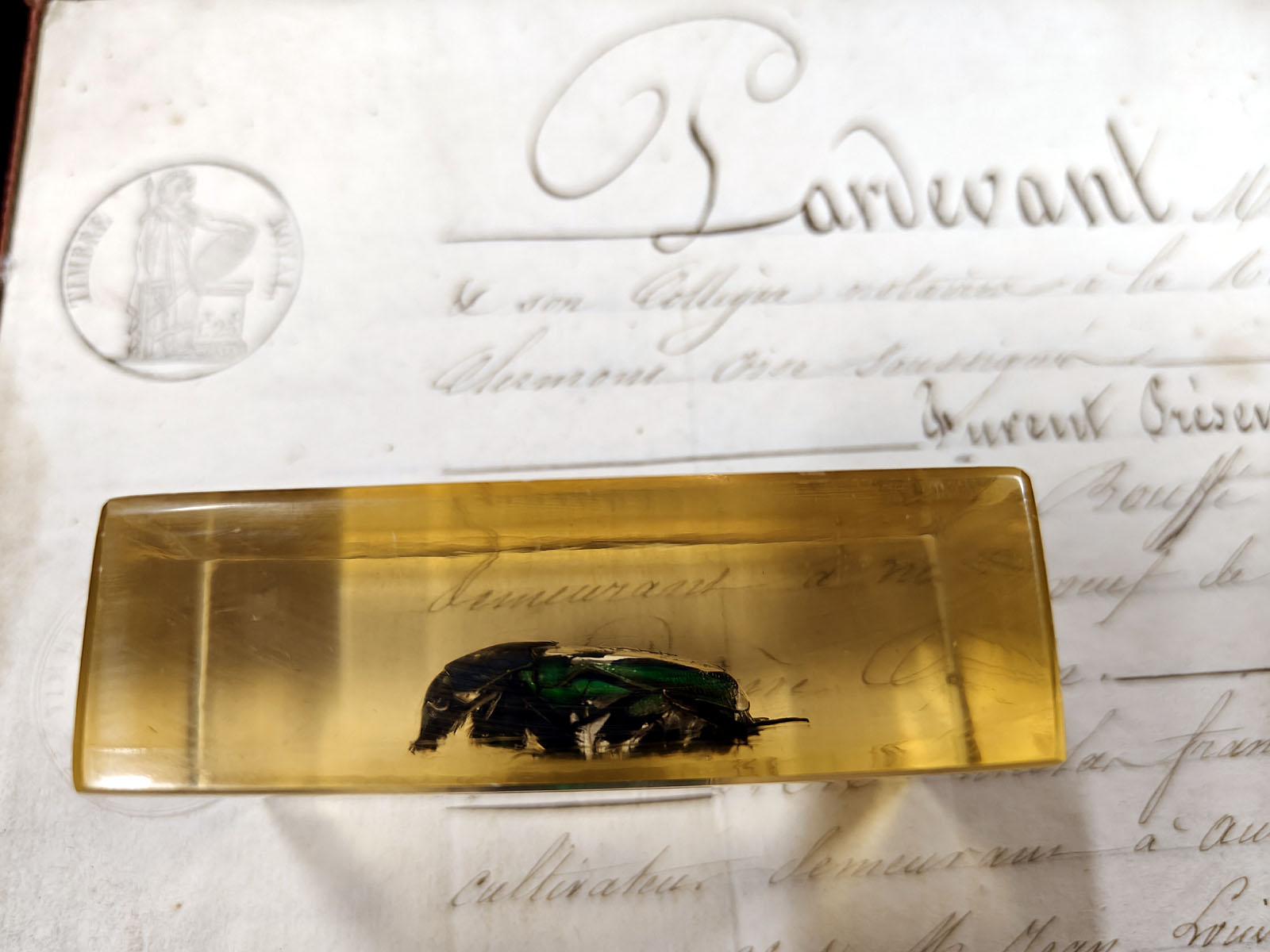 Kokoelman näytteet kattavat laajan kirjon biologista materiaalia, hyönteisistä ja perhosista pieniin luurankoihin ja muihin luonnonmuodostelmiin. Jokainen näyte on kapseloitu optisesti kirkkaaseen hartsiin, joka suojaa sitä kosteudelta, UV‑valolta ja mekaaniselta kulumiselta. Tämä säilöntämenetelmä mahdollistaa rakenteiden, kuten siipisuonituksen, kudosmuotojen, segmenttijaon tai luuston yksityiskohtien tarkastelun kaikista kulmista ilman optisia vääristymiä.