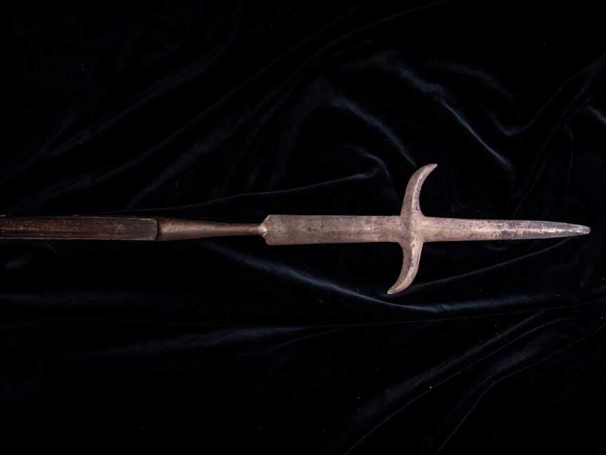 Alkuperämaa: Eurooppa Valmistusajankohta: 1800-luku Valmistaja: Tuntematon Signeeraus/Merkinnät: Ei merkintöjä Pituus: 223 cm Kunto: Hyvä, terä ja varsi hyvässä kunnossa, pinnoissa tummentumaa / pintakulumaa. Muuta: Hienokuntoinen salkoase, varsin klassinen ja brutaali teräosa. Kyseinen ”Halberd” on tehty mitä ilmeisimmin taistelukäyttöön, kyseessä erittäin hieno pala aseiden kehityshistoriaa. Salkoaseet (engl. polearms) olivat keskiajan jalkaväen keskeisiä aseita. Ne koostuivat noin 2–2,5 metrin pituisesta salosta, jonka …