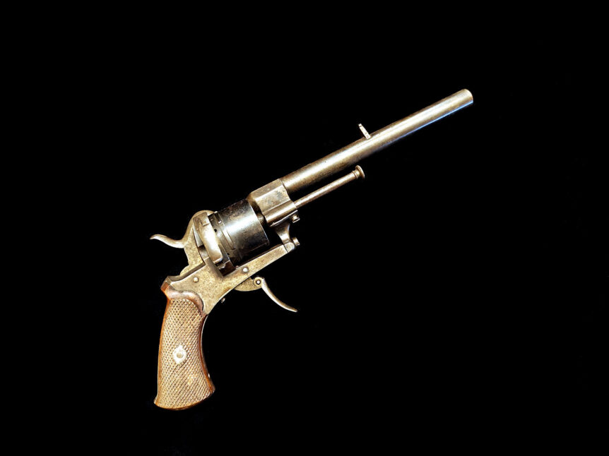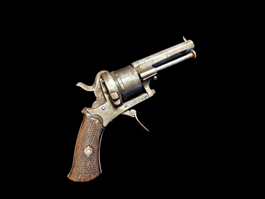 Belgialainen ELG -leimattu piikkipatruunarevolveri, 1860-l.