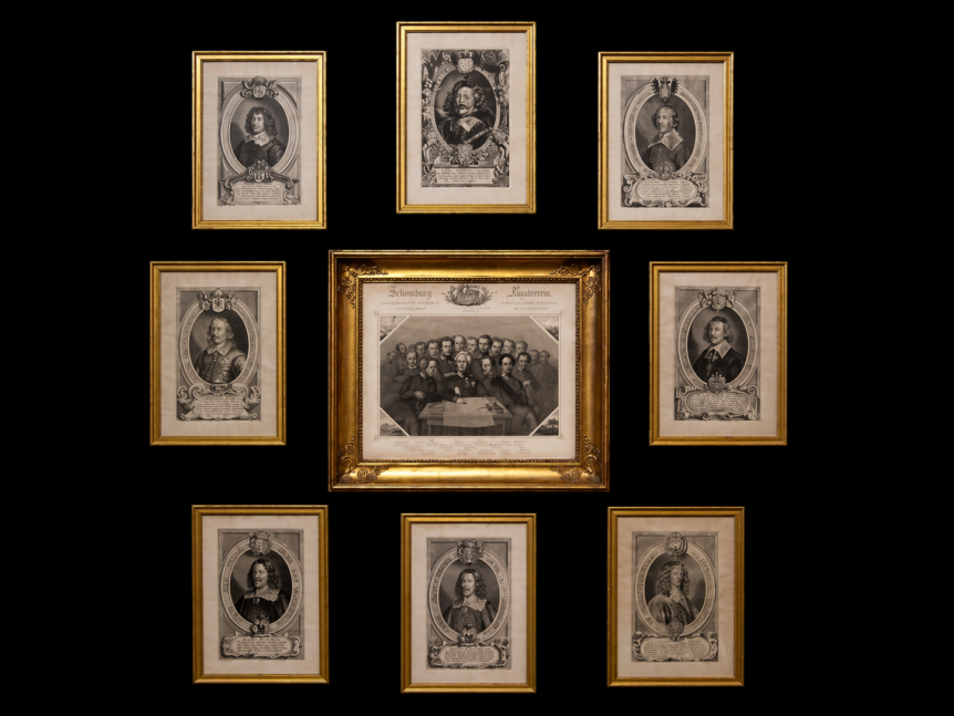 Harvinainen 1600-luvun gravyyrikollaasi, 7 kpl