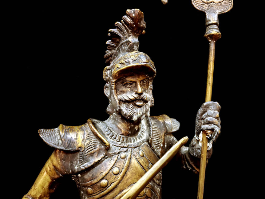 Alkuperä: Eurooppa Valmistusajankohta: 1800-luvun loppu Mitat: Korkeus 111 cm x leveys 40 cm, jalustan halkaisija 25 cm Materiaali: Pronssi Paino: Painava patsas, painoa varmaan 12-15 kg Kunto: Hyvä, ajanmukaista kulumaa / patinaa Muuta: Tämä 1800 luvun vaikuttava pronssiveistos on todellinen katseenvangitsija, jollaisia ei juuri koskaan vastaan tule. Veistos on poikkeuksellisen suuri, mutta siitä huolimatta sen yksityiskohtaisuus on hulppea! Tämän kokoluokan …