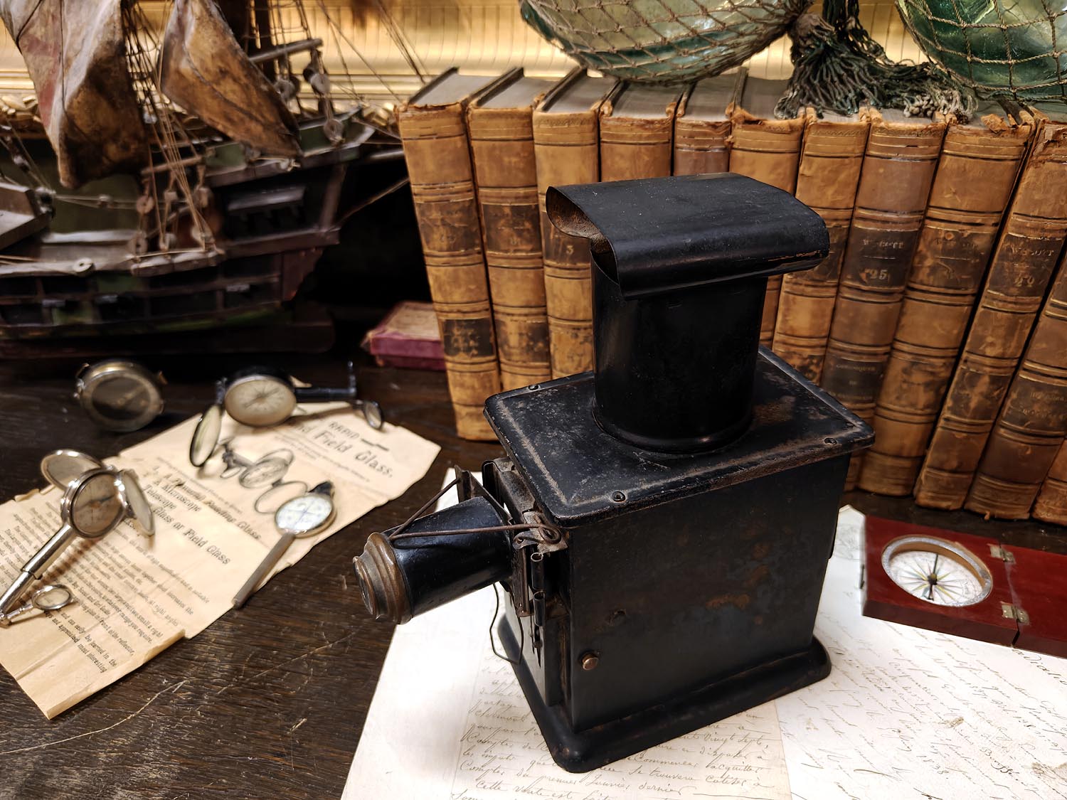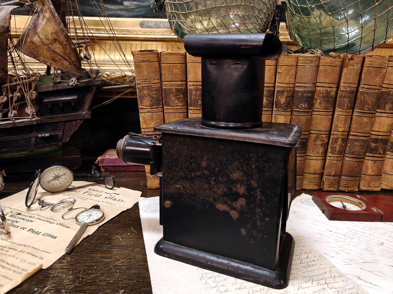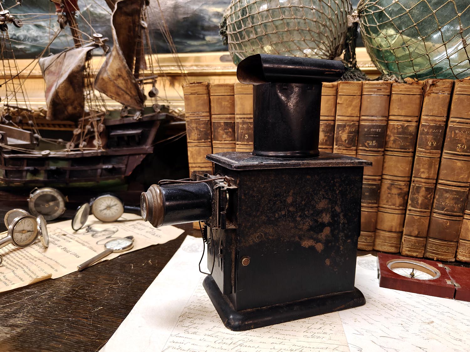 Muuta: No niin, nyt on komiata tieteellisen antiikin edustajaa tarjolla! Taikalyhty, eli laterna magica oli nykyaikaisemman diaprojektorin esiaste. Hieno lisä melkein mihin tahansa ympäristöön.