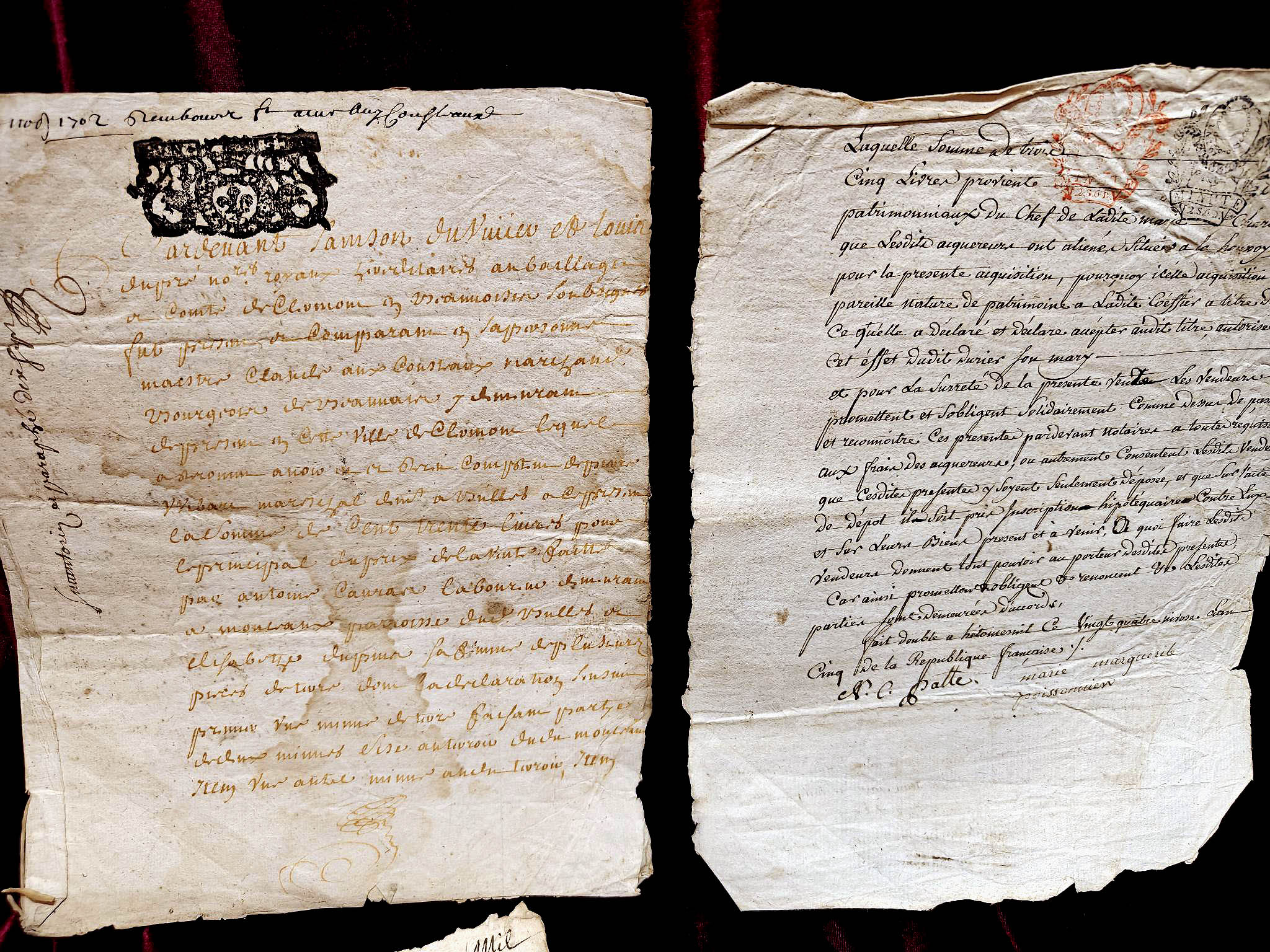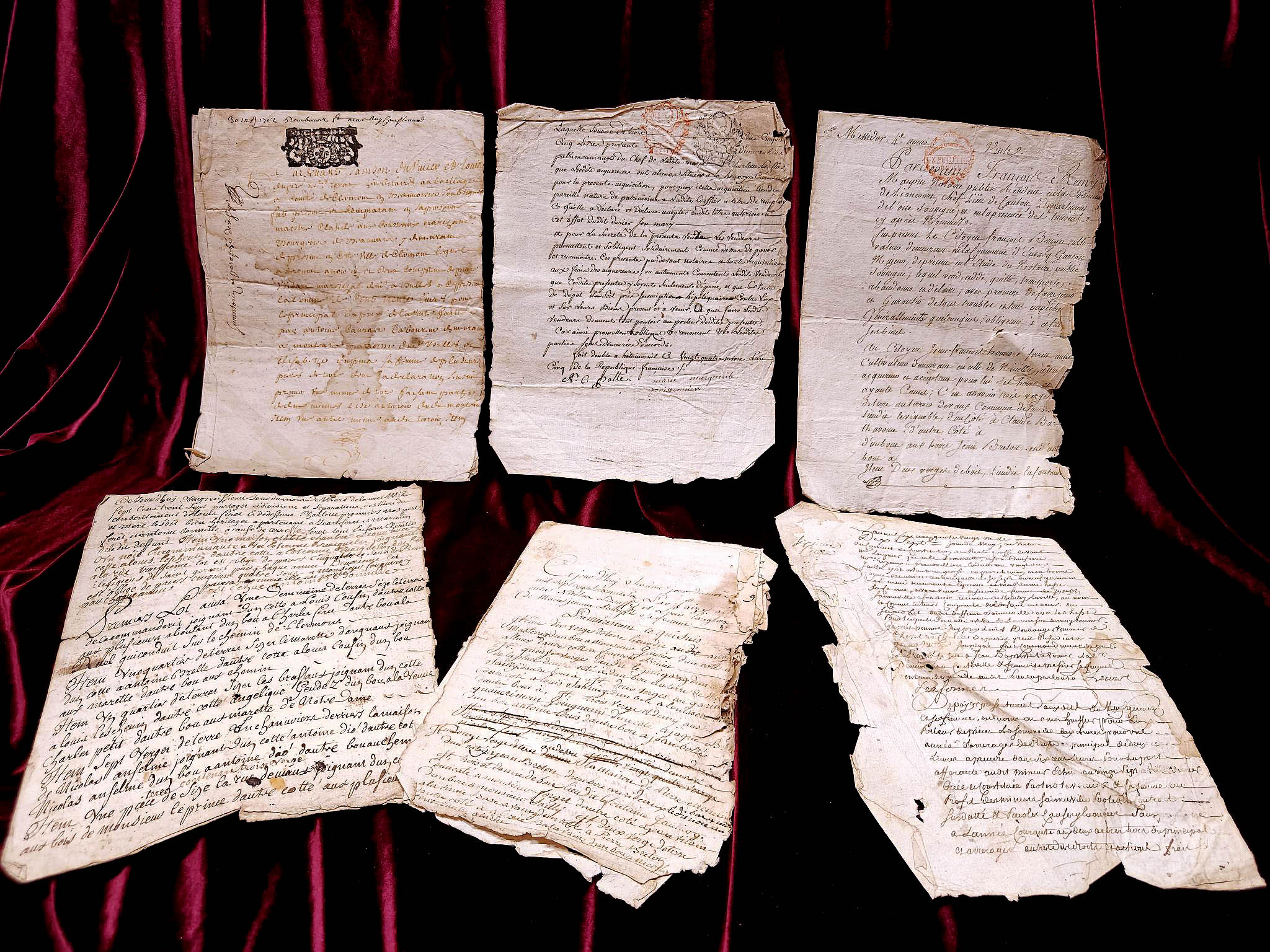 Muuta: Erittäin upea Ranskan Napoleonin aikakauden kokonaisuus, jossa mukana yli 300 vuotta vanhoja erilaisia dokumentteja (mm. notaarisertifikaatteja). Asiakirjoissa on leimoja ja allekirjoituksia, 4-sivuisessa asiakirjassa on mm. vuosiluku 1702. Tässä on todellakin kotitutkijan unelmakohde ja lisäksi näillä saa tehtyä myös aivan upeaa sisustusta! Harvoin on meilläkään tarjolla näin upeita ja vanhoja dokumentteja.