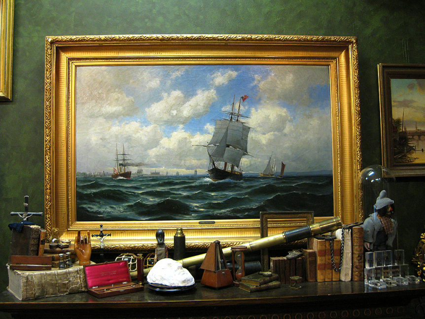 Tekijä / taiteilija: Christian Fredrik Svensson (1834-1909) Teos: ”Motiv från Öresund” Alkuperämaa: Ruotsi Valmistusajankohta: 1879 Tekniikka: Öljy kankaalle Koko: 176 cm x 120 cm Signeeraus: Kyllä Kehykset: Alkuperäiset, koristeelliset arvokehykset, ajanmukaista kulumaa Kunto: Erinomainen Muuta: Maalauksen on täydellisesti konservoinut Christin Anderberg vuonna 2014