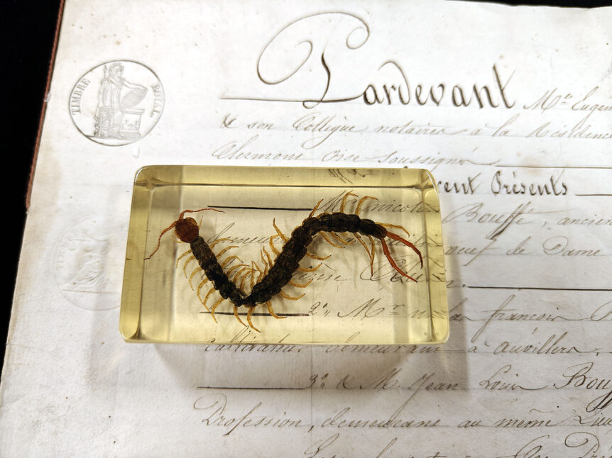 Laji: Skolopendri eli juoksujalkainen (Scolopendra sp) – tunnistus vahvistamatta Kokoelma: Natura Obscura Arkistoluokka: Biologinen näyte / kapseloitu näyte / ei luokiteltu Säilytyspaikka: Old Illusions – Natura Obscura, Hylly 1A Turvallisuustaso: Bio anomalia taso II – Turvallinen Tiedonlähde: Kenttäraportti, Tuntematon kerääjä Alkuperä ja ajankohta: Eurooppa – arvioitu talteenotto 1900/2000-luvun taite, tarkka päiväys tuntematon Näytteen koko: 7,5 x 4 x 2 cm …