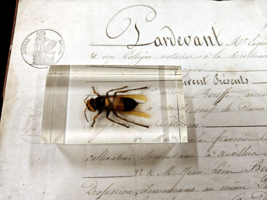 Laji: Aasianjättiherhiläinen (Vespa mandarinia) – tunnistus vahvistamatta Kokoelma: Natura Obscura Arkistoluokka: Biologinen näyte / kapseloitu näyte / ei luokiteltu Säilytyspaikka: Old Illusions – Natura Obscura, Hylly 1A Turvallisuustaso: Bio anomalia taso II – Turvallinen Tiedonlähde: Kenttäraportti, Tuntematon kerääjä Alkuperä ja ajankohta: Eurooppa – arvioitu talteenotto 1900/2000-luvun taite, tarkka päiväys tuntematon Näytteen koko: 7,5 x 4 x 2 cm Lisätiedot: Tämä …