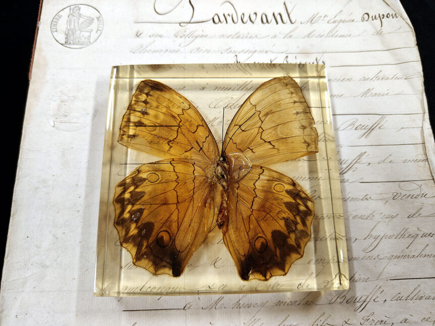 Laji: Stichophthalma louisa siamensis (Viidakkokuningatar) Kokoelma: Natura Obscura Arkistoluokka: Biologinen näyte / kapseloitu näyte / ei luokiteltu Säilytyspaikka: Old Illusions – Natura Obscura, Hylly 1A Turvallisuustaso: Bio anomalia taso II – Turvallinen Tiedonlähde: Kenttäraportti, Tuntematon kerääjä Alkuperä ja ajankohta: Eurooppa – arvioitu talteenotto 1900/2000-luvun taite , tarkka päiväys tuntematon Näytteen koko: 10 x 10 x 2,5 cm Lisätiedot: Tämä hartsikapseloitu …
