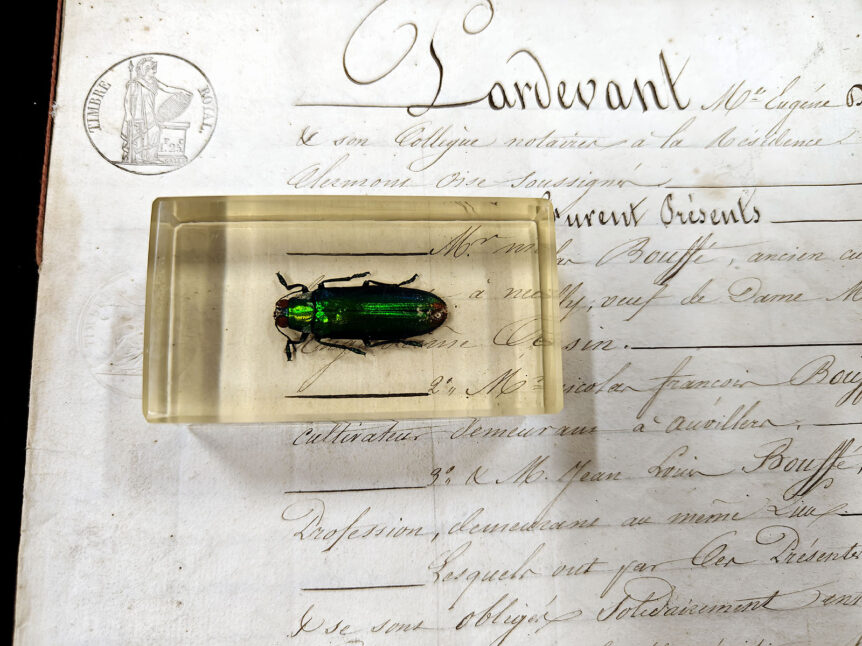 Laji: Jalokuoriainen (Sternocera aequisignata) – tunnistus vahvistamatta Kokoelma: Natura Obscura Arkistoluokka: Biologinen näyte / kapseloitu näyte / ei luokiteltu Säilytyspaikka: Old Illusions – Natura Obscura, Hylly 1A Turvallisuustaso: Bio anomalia taso II – Turvallinen Tiedonlähde: Kenttäraportti, Tuntematon kerääjä Alkuperä ja ajankohta: Eurooppa – arvioitu talteenotto 1900/2000-luvun taite, tarkka päiväys tuntematon Näytteen koko: 7,5 x 4 x 2 cm Lisätiedot: Tämä …