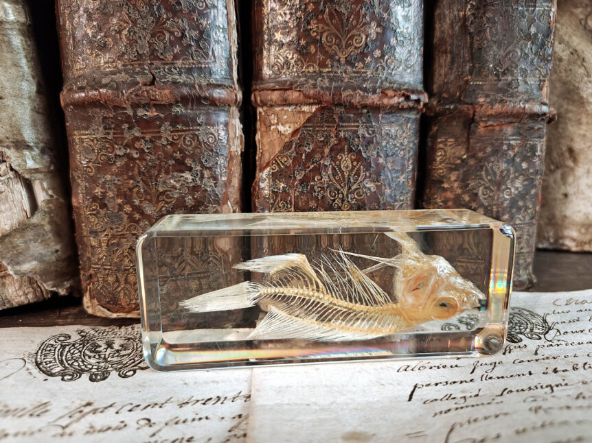 Laji: Karppi, Carassius auratus Kokoelma: Natura Obscura Arkistoluokka: Biologinen näyte / kapseloitu näyte / ei luokiteltu Säilytyspaikka: Old Illusions – Natura Obscura, Hylly 1A Turvallisuustaso: Bio anomalia taso II – Turvallinen Tiedonlähde: Kenttäraportti, Tuntematon kerääjä Alkuperä ja ajankohta: Eurooppa – arvioitu talteenotto 1900/2000-luvun taite , tarkka päiväys tuntematon Näytteen koko: 11 x 4 x 2,5 cm Lisätiedot: Tämä hartsikapseloitu näyte …