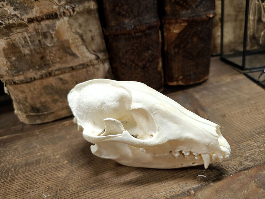 Alkuperä: Eurooppa Laji: Supikoira (Nyctereutes procyonoides) Ajoitus: 2000-luku Koko: Pituus 12,5 cm, leveys 7 cm Kunto: Hyvä, hampaat ja kallon rakenteet ehjiä ja selvästi erottuvia Muuta: Tämä kompakti ja selkeäpiirteinen kallo kuuluu supikoiralle (Nyctereutes procyonoides), joka on levinnyt Euroopassa erityisesti 1900-luvun jälkipuoliskolla. Supikoira ei ole ainoastaan ekologisesti sopeutuva, vaan myös evolutiivisesti erikoinen. Se on nimittäin ainoa koiraeläin, joka vaipuu talvihorrokseen. …
