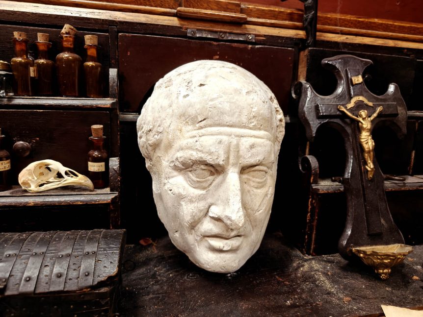 Alkuperä: Eurooppa Valmistusajankohta: 1900-luvun alku Mitat: Korkeus 27 cm x leveys 18 cm, syvyys 12 cm Materiaali: Kipsi Kunto: Hyvä, ajanmukaista kulumaa / patinaa Muuta: Harvinainen ja erittäin yksityiskohtainen kuolleen ihmisen kasvoista tehty aito kuolinnaamio, joka sopii hienosti hiukan ”erikoisempia” esineitä keräävälle. Kuolinnaamio on ajan kapseli, joka herättää kysymyksiä elämästä, kuolemasta ja muistamisen tavoista. Kipsiin tai vahaan valettu muotti tallentaa …