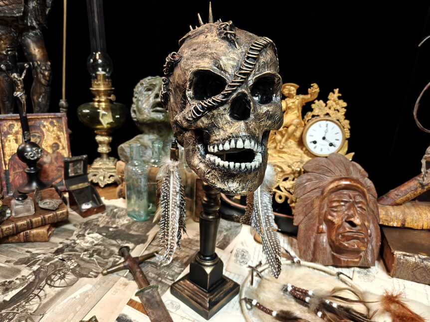 Arkistoluokka: Shamanistinen reliikki / Okkulttinen artefakti / ei luokiteltu Säilytyspaikka: Old Illusions – Arkisto B: Crania Mortis Salaisuusluokka: Kansio X47 – Ei-julkinen materiaali Tiedonlähde: Fragmentoitu kulttikirjoitus, osittain tuhottu The Bone Shamanin alkuperä on kadonnut savun, veren ja loitsujen taakse. Hänen kallonsa ei ole pelkkä jäännös — se on rituaalinen ruukku, johon on sidottu enemmän kuin yksi elämä. Jokainen ommel hänen …