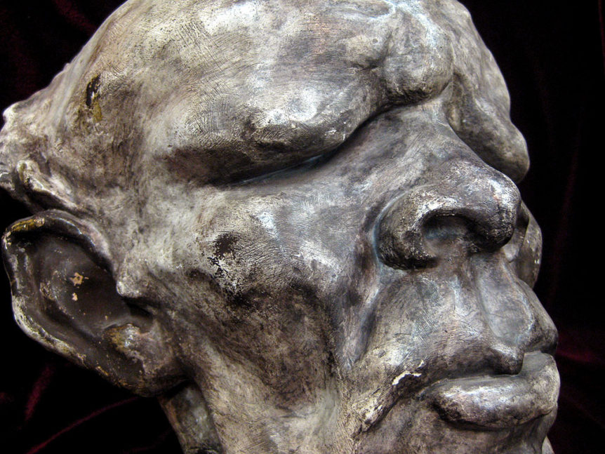 Alkuperämaa: Tuntematon Valmistusajankohta: 1900-luku Mitat: Korkeus 30 cm x leveys 23 cm, syvyys 20 cm Materiaali: Kipsi? Kunto: Hyvä, ajanmukaista kulumaa / patinaa Muuta: Harvinainen ja äärimmäisen pelottavan sekä aidon näköinen Memento mori -patsas. Patsaassa ilmeisesti tekijän monogrammi -signeeraus. Memento mori: Memento mori (suom. muista kuolevaisuutesi tai muista kuolevasi) on usein käytetty latinankielinen sanonta ja taiteessa yleinen aihepiiri eli teema. …