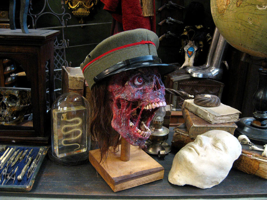 Alkuperä: Suomi Valmistusajankohta: 2000-luku Mitat: Korkeus jalustan kanssa 32 cm, leveys 19 cm Kunto: Hyvä Muuta: Mielettömän upea ja yksityiskohtainen ns. anatominen kallomalli, joka ei jätä ketään ”kylmäksi”. Kallon on tehnyt käsityönä samainen taiteilija, joka teki tunnetuksi myös meillä olleen maamme kuuluisimman ”The Mummy” –arkkupöydän. Myös tämä kohde on tehty äärimmäisen yksityiskohtaisella tarkkuudella ja se on nimetty kuuluisan Painajainen Elm …