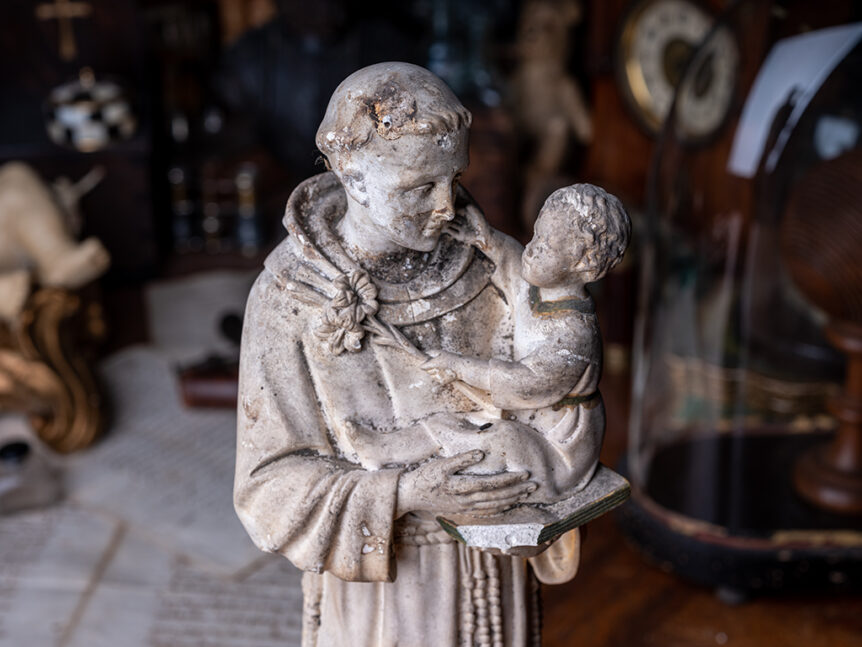 Alkuperämaa: Ranska Valmistusajankohta: 1800-l. Signeeraus: Pieraccini E Mitat: Korkeus 39 cm Materiaali: Keraaminen? Kunto: Hyvä, kulumaa / patinaa, pieniä palapuutoksia Muuta: Mielettömän upea patsas, joka kantaa alaosassaan signeerausta ”Pieraccini.Ed”. Patsaan yksityiskohdat ovat mielettömät ja patsas on kuin suoraan Da Vinci Code -elokuvasta. Vastaavanlaisia yhtä laadukkaasti valmistettuja 1800-luvun signeerattuja patsaita liikkuu harvemmin, joten tässä on hieno mahdolisuus saada kotiin jotain ainutlaatuista.