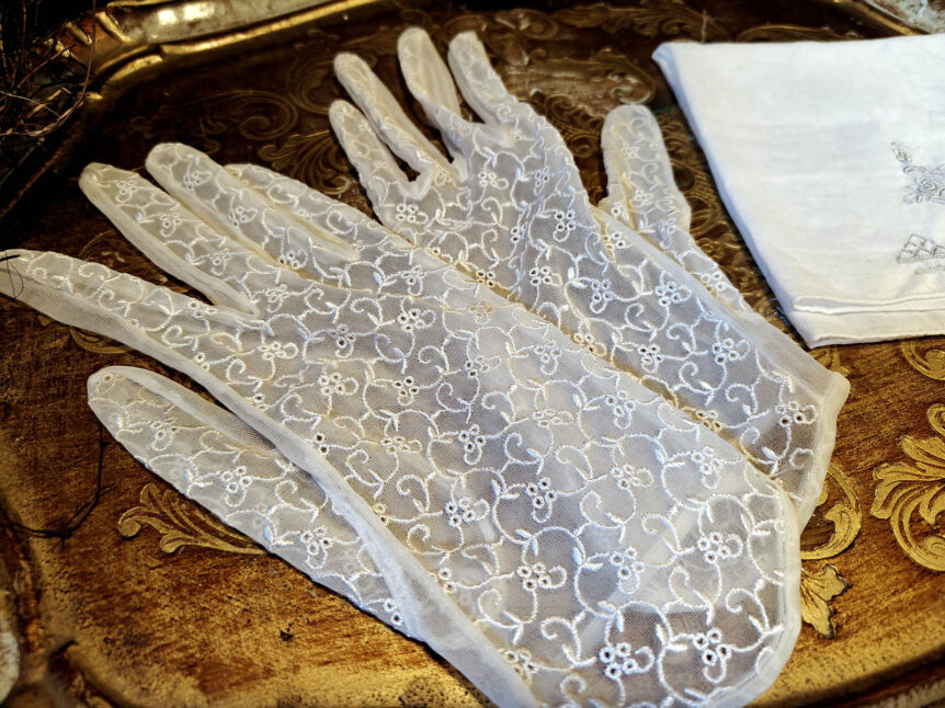 Pitsikäsineet & nenäliina ”Madamoiselle”, 1950–1960