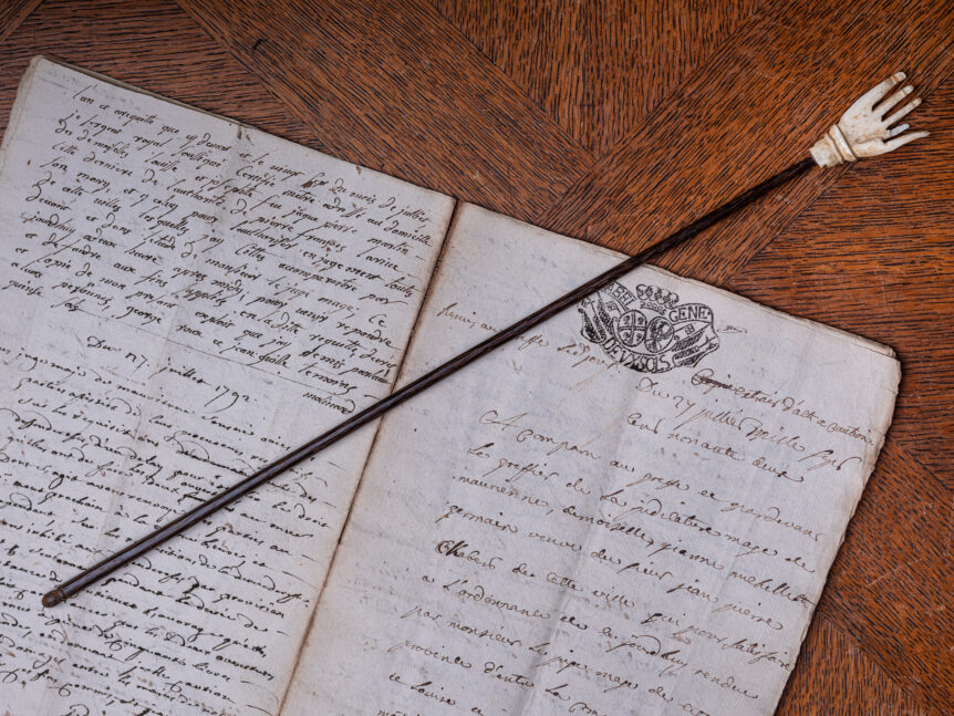 Alkuperä: Englanti Valmistusajankohta: 1800-luvun loppu (viktoriaaninen aikakausi) Materiaali: Kahva puuta, raaputinosa (käsi) kaiverrettu luusta Mitat: Pituus 35 cm Toiminta: Testattu ja toimii Kunto: Kohtalainen, pinnoissa ajanmukaista kulumaa / patinaa. Etusormi puuttuu, joku paksunahkainen on raaputellut voimalla menemään. Provenienssi: Kohde on tullut Lady Anne Winningtonin yksityiskokoelmasta Muuta: Todellinen viktoriaanisen ajan herkku, erikoinen mutta käytännöllinen esine. Kohde on hienoa käsityötä ja melkeinpä …