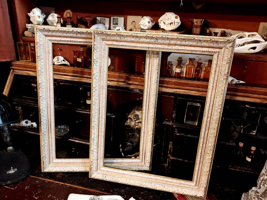 Alkuperä: Ranska Ajankohta: 1900‑luvun alkupuoli Koko: 49 × 39 cm, sisähuullos 40,5 × 30,5 cm Materiaali: Puu Kunto: Hyvä, luonnollinen patina, kauniisti kulunut pintakultaus Muuta: Tämä kaunis ranskalainen kehyspari edustaa aikakautensa sisustuksen hienostuneinta kerrosta, tai oikeastaan salonkityylin eleganssia. Kehysten runsas ornamentiikka, kullatun ja hopeoidun pinnan kerroksellinen kuluneisuus, sekä pehmeästi tummuneet yksityiskohdat kertovat käsityöstä, joka oli suunniteltu kestämään ja näyttämään hyvältä …