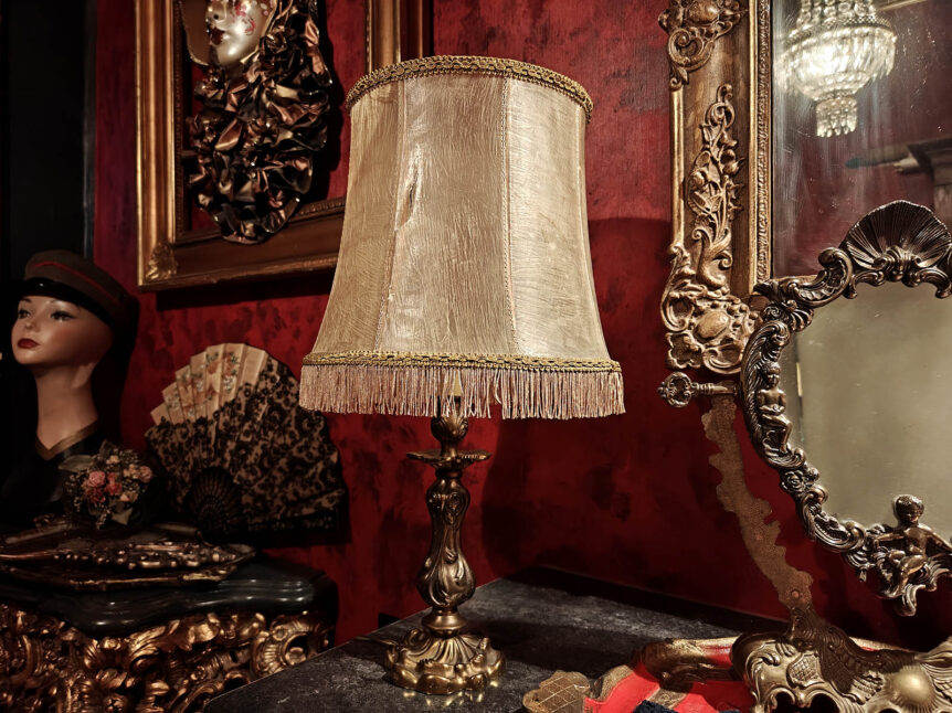 Alkuperämaa: Englanti Valmistusajankohta: 1960-1970-l. Mitat: Korkeus 50 cm, halkaisija 30 cm Toiminta: Toimii, mutta tähän valaisimeen käypäisen lampun kanta on ”vanhanaikainen” Kunto: Hyvä-, miinuksen tuo valaisimen varjostimessa oleva ”vekki”, joka on käännetty kuvissa tarkoituksella esille, mutta jonka saa piilotettua valaisimen ns. seinän puolelle. Muuta: Tämä valaisin on tunnelmallisen tyylikäs ja elegantti kuten sen nimikin sen kertoo… Todellinen ”kuningattaren” valaisin. Valaisin …